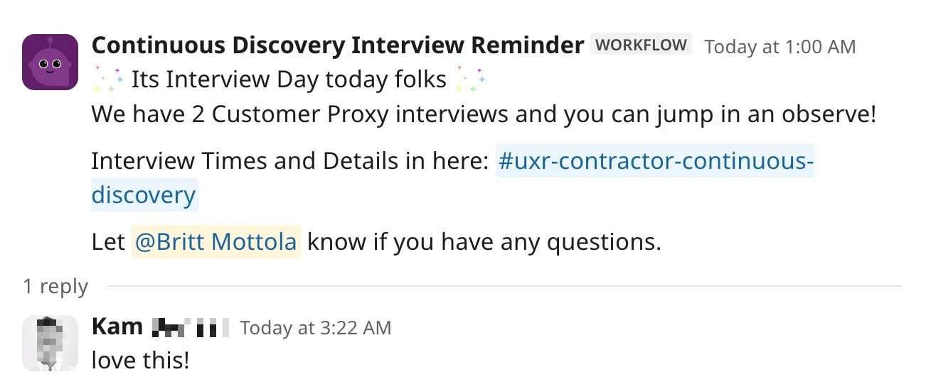 Knowledge Sharing: Research recordings and highlight reels are shared via a User Testing Slack integration to keep the company informed.