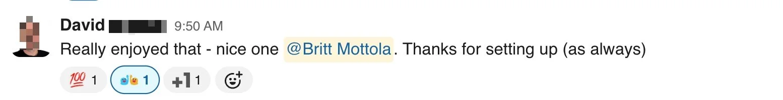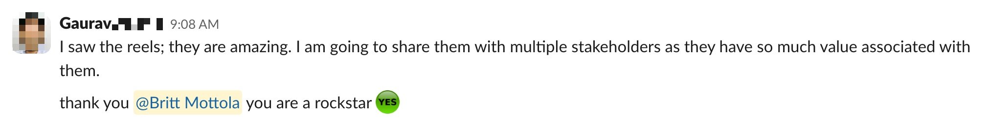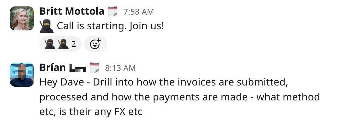 Slack reminder in stakeholder channels for team members to join call.
