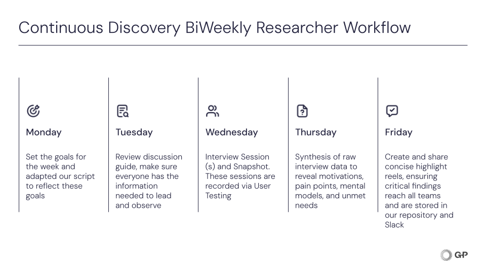 The team implements a structured, biweekly research cadence to ensure consistent data flow.