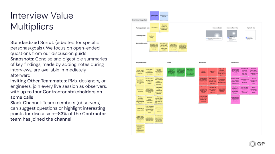The transition to a continuous discovery model ensures that research is not a one-time event but a sustainable pipeline. The use of Interview Snapshots and highlight reels serves as a vital historical reference, preventing the loss of institutional knowledge and ensuring that the "voice of the contractor" is consistently represented in product decisions.