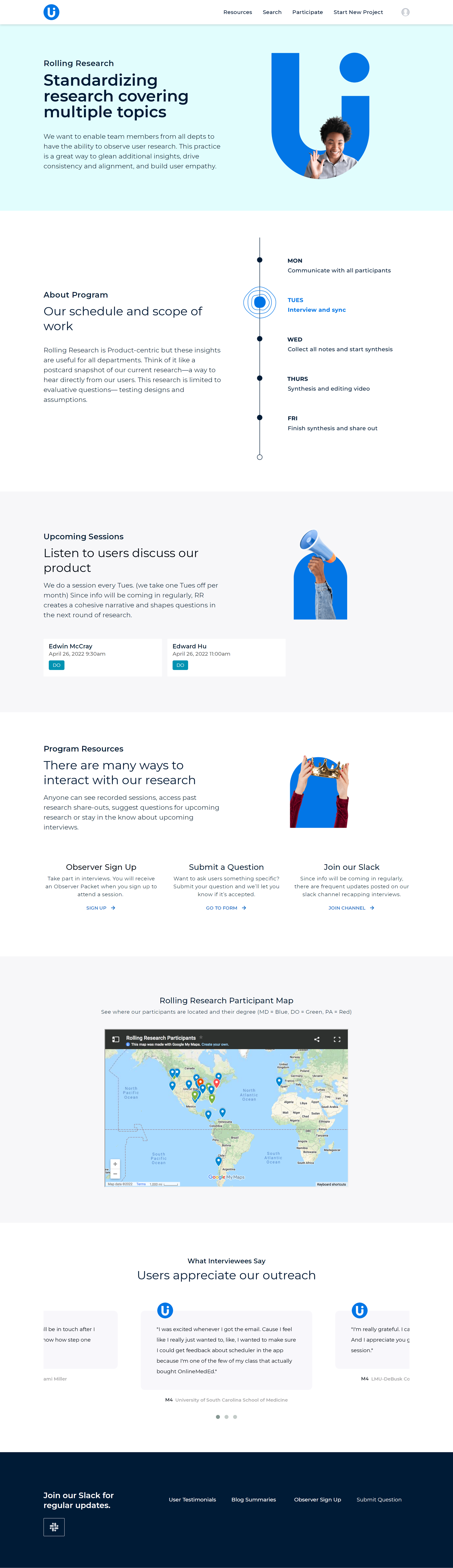 Continous Discovery page on UXR Site. We call our program Rolling Research.
